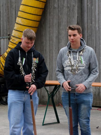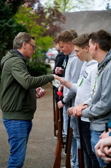 Außerdem konnte der Hauptmann einige neue Mitglieder in die Schützenreihen aufnehmen und mit dem Holzgewehr und dem Mitgliedsfähnchen ausrüsten.