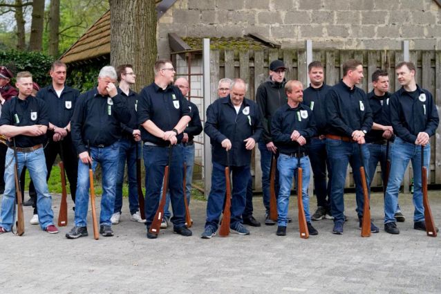 Die zahlreich angetretenen Schützen mit dem ersten und dem zweiten Glied stellten sich dem noch amtierenden Königspaar Martin Stöhler und Ulla Barenbrügge.