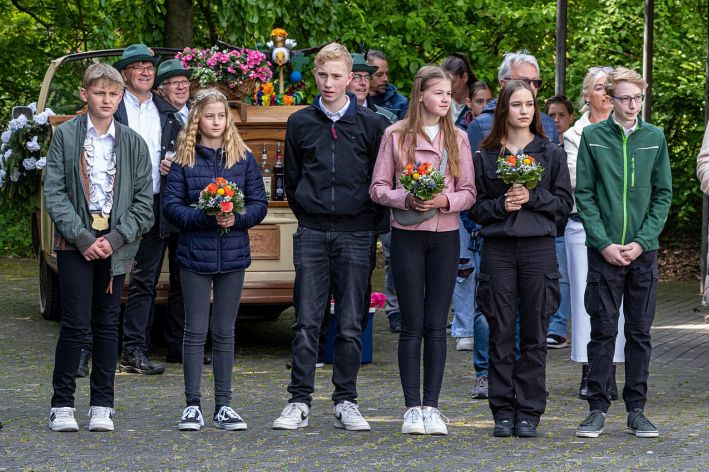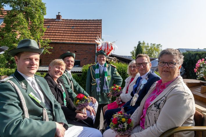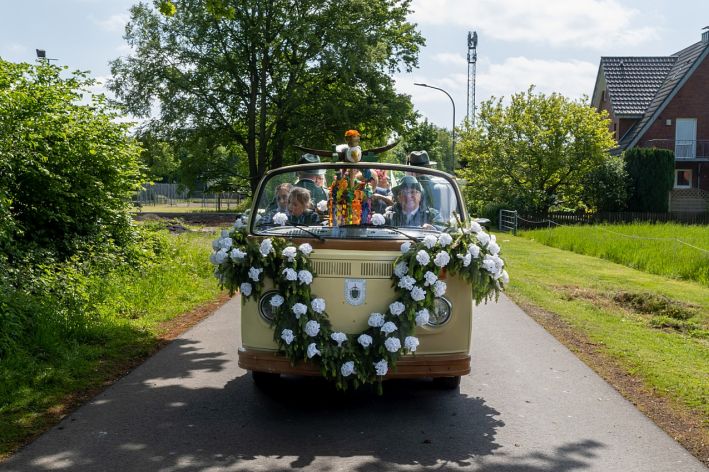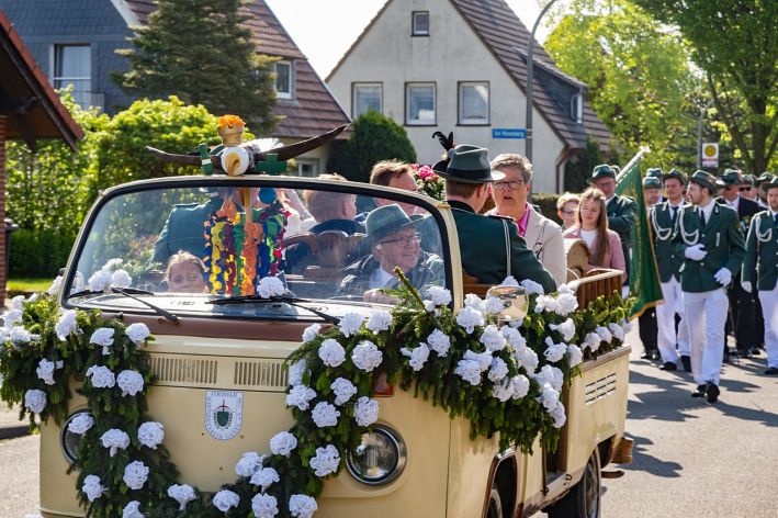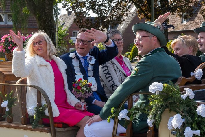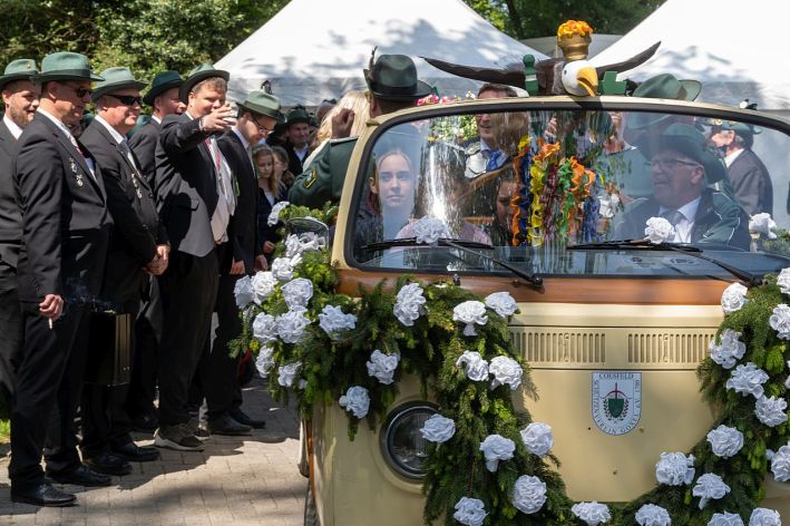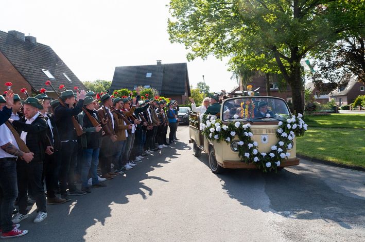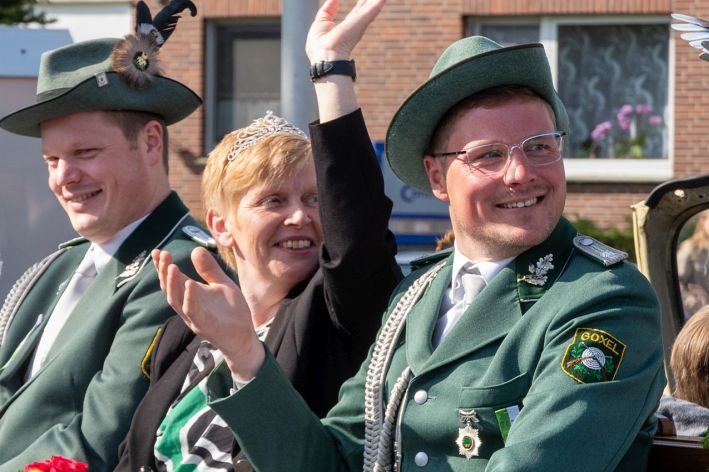 Nur noch wenige Stunden werden der amtierende Schützenkönig Martin Stöhler mit seiner Königin Ulla Barenbrügge und Gefolge im Amt sein. Am Morgen des Feiertages chauffiert Ludger Gerding den Königswagen zum Franz-Rohls-Platz im Goxeler Wohngebiet.