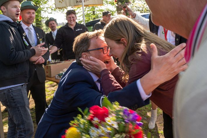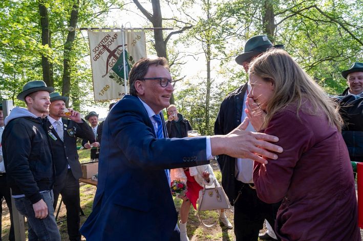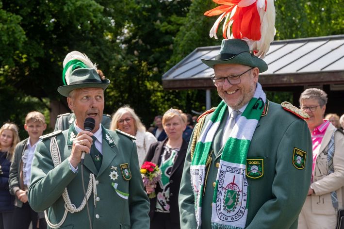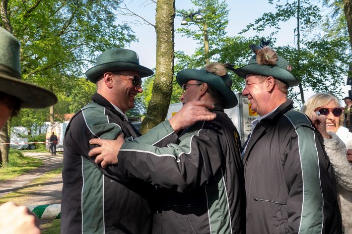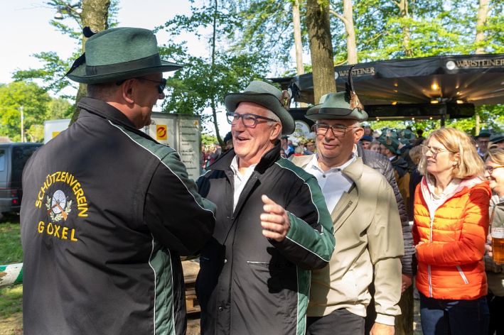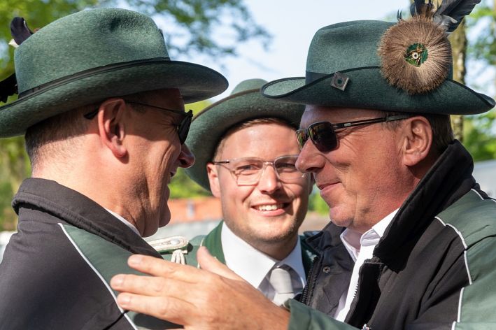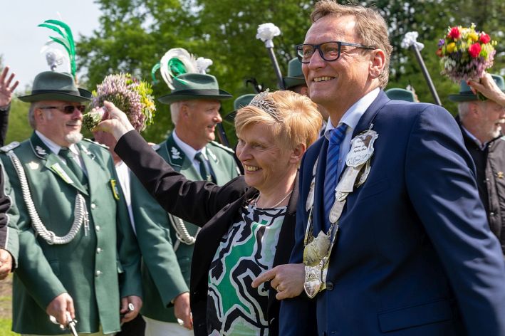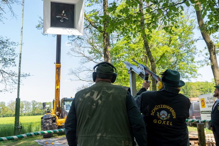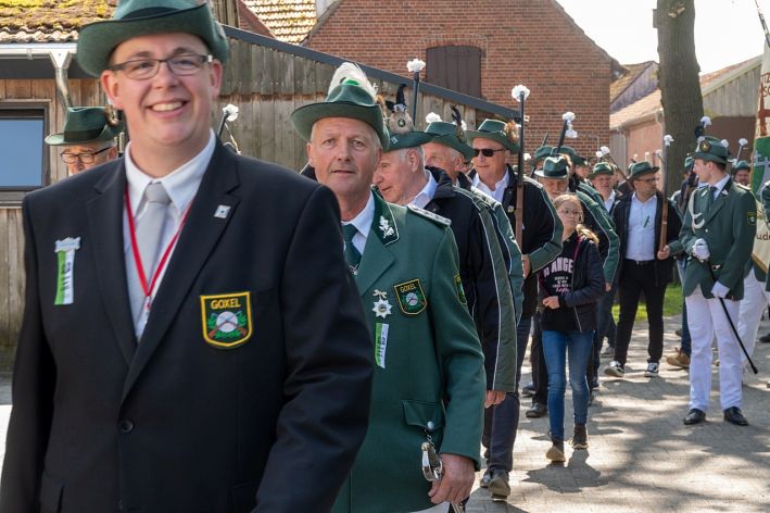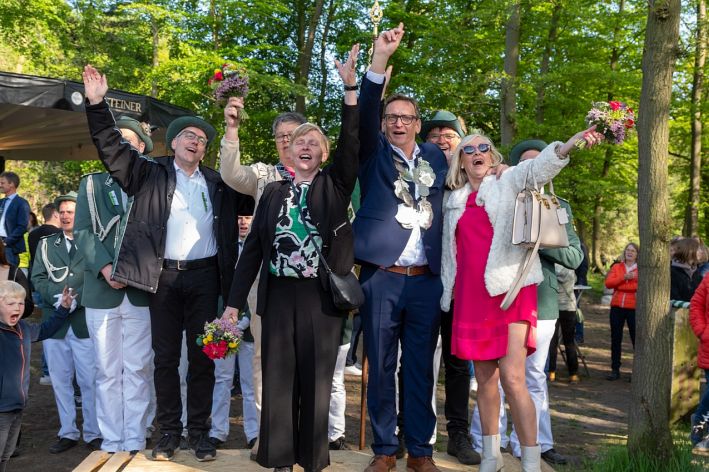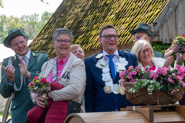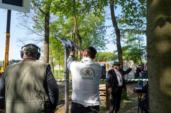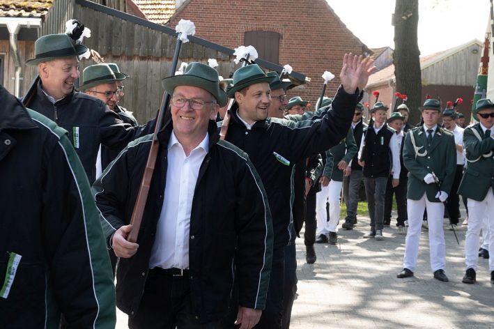 Es brauchte noch weitere 87 Schuss, ehe der neue Schützenkönig in Goxel feststand. Nach einem Dreikampf um die Königswürde gelang es dem Vorsitzenden Holger Kaup die Reste des Vogels abzuschießen - zu seinem 30-jährigen Thronjubiläum!