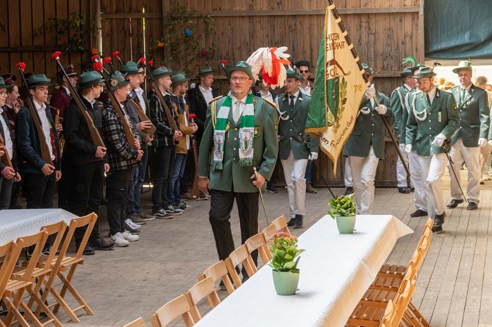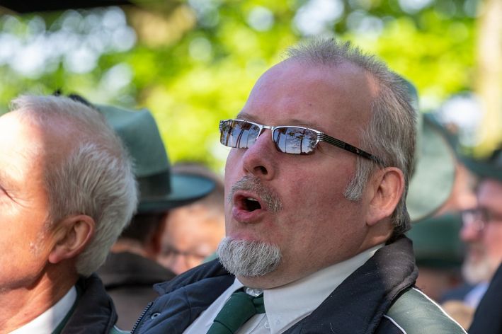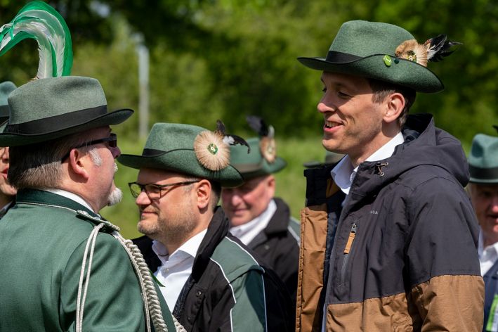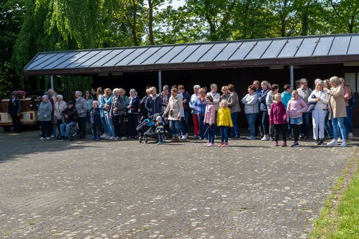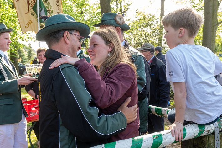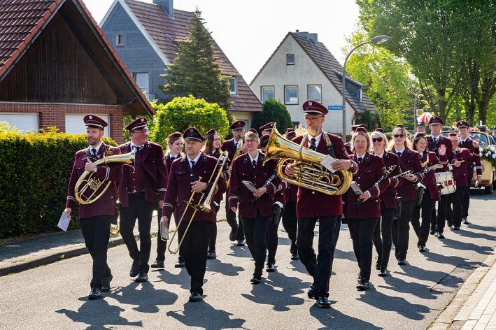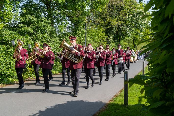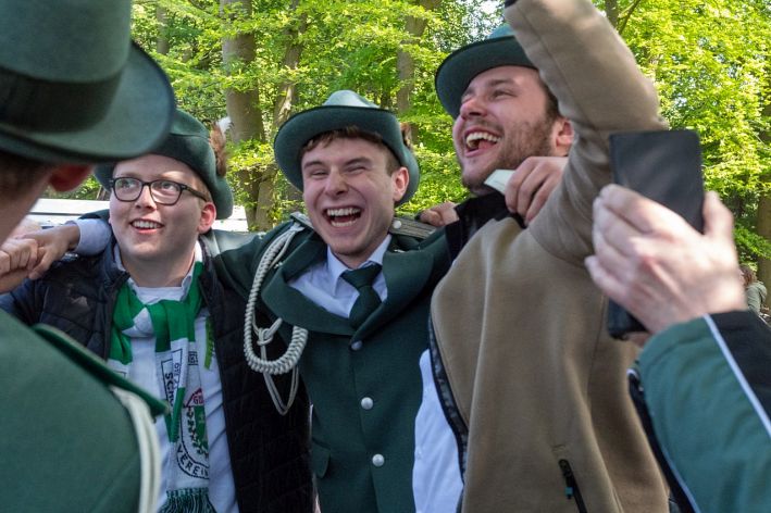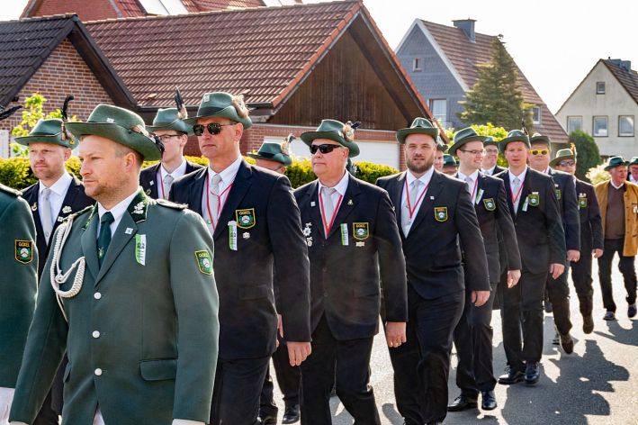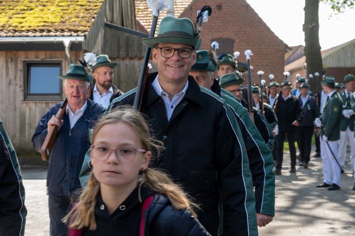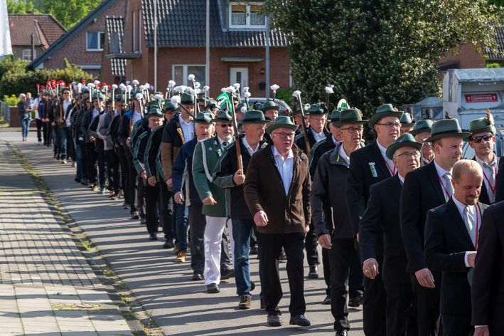 Dann folgte der Marsch durch frisches Frühlingsgrün zur Schützenhalle auf dem Hof Kaup-Hertger.
