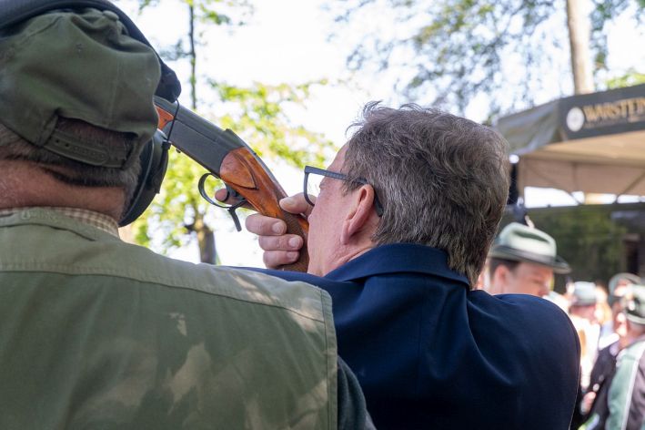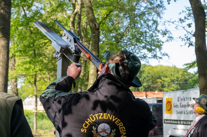 ... und Pfarrer Johannes Hammans eröffnet das Schießen. Der zweite Schuss ist dem "alten König" vorbehalten. Dann hieß es "Feuer frei" für die Schützen.