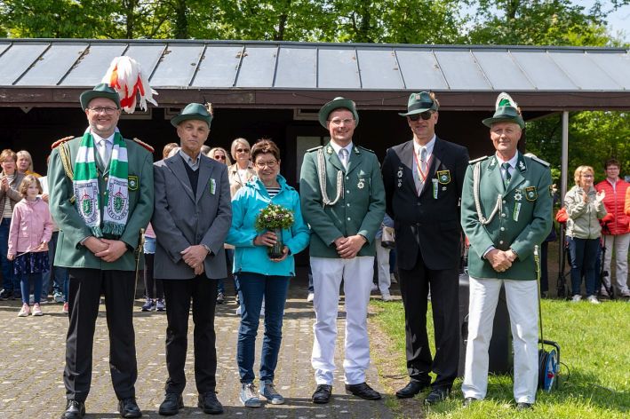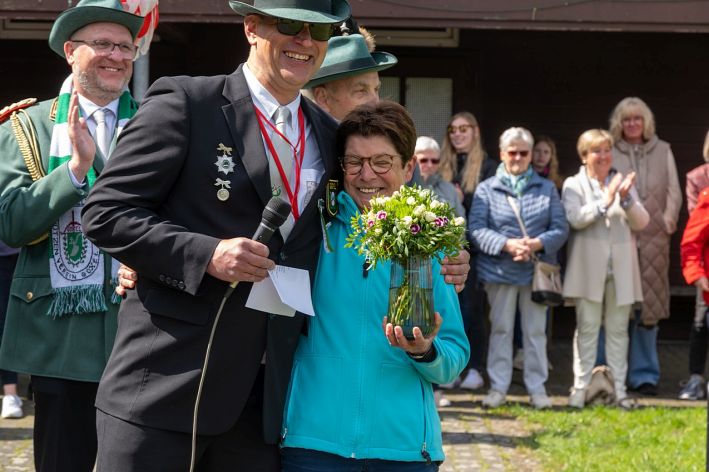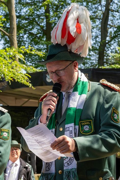 Vors. Holger Kaup nahm verschiedene Ehrungen vor, u.a. überreichte er Josef Sunderhaus eine Plakette zum 50-jährigen Thronjubiläum. Auch bedankte er sich bei Inge Kaup, die mit ihrer Familie immer wieder eine "Heimstätte" für den Schützenverein durch die Bereitstellung der Schützenhalle bietet. Inge selbst war vor 25 Jahren Königin in Goxel.