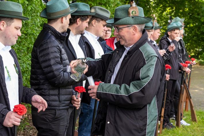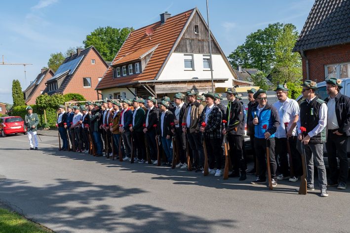 Dort warteten bereits der Vorsitzende des Vereins Holger Kaup sowie die Offiziere auf die Schützen. Zum ersten Mal am Feiertag ertönt der Befehl "Antreten!"