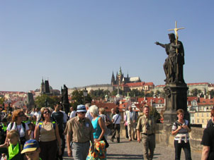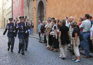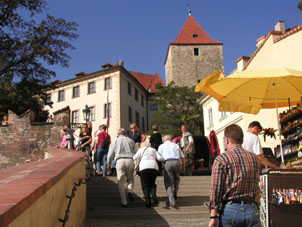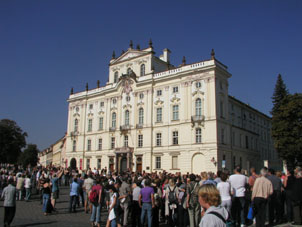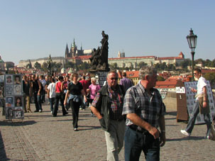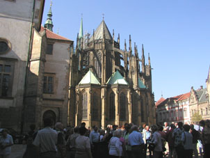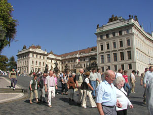 Der Rundgang begann mit dem Aufstieg zur Prager Burg, dem Hradschinplatz, heutiger Amtssitz des Präsidenten der Republik. Die Dominante der Prager Burg ist der gotische St.-Veits-Dom. Aber auch das "Goldene Gässchen" wurde besichtigt und dem Wachwechsel zugesehen.