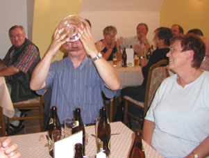 Besonders großen Durst hat dabei offensichtlich der Reiseleiter, der ein "kleines Gläschen" zu sich nimmt.