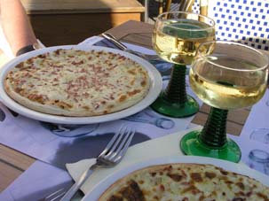 ... wie der "Flamm-Kuchen" bei einem Glas Wein.