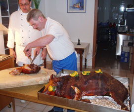 Am Abend folgte dann ein weiterer Höhepunkt: Ein lecker zubereitetes Spanferkel wartete auf hungrige "Mäuler" - einfach köstlich!