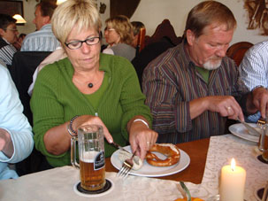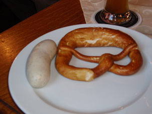 Um die Mittagszeit folgte ein Imbiss im Brauhaus mit Bier, Brezel und Weisswurst...