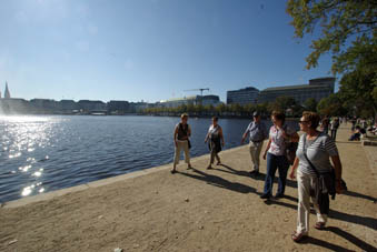 Vorbei an Binnen- und Außenalster war das Wahrzeichen Hamburgs, die St. Michaelis-Kirche (Michel) mit den Kramer-Amtsstuben eine der Stationen.