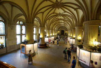 Das imposante Hamburger Rathaus mit dem Eingangssaal und dem Innenhof