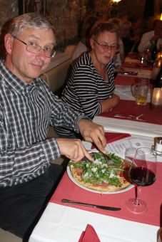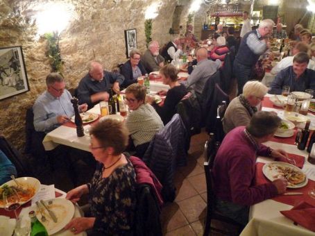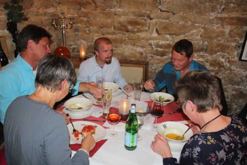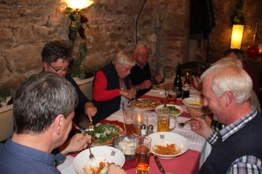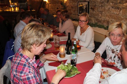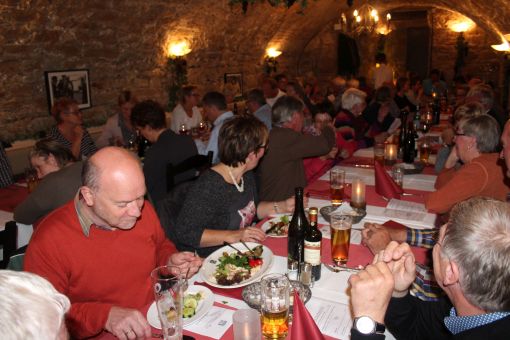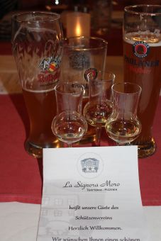 war am Abend im Kellergewölbe beim Italiener "La Seniora Mora" am Marktplatz von Ludwigsburg der Tisch gedeckt.