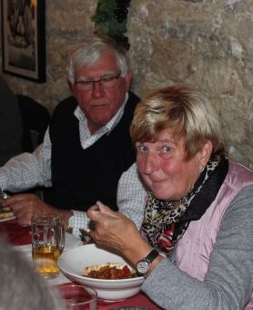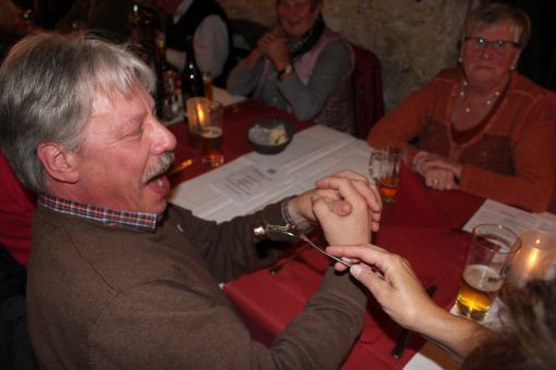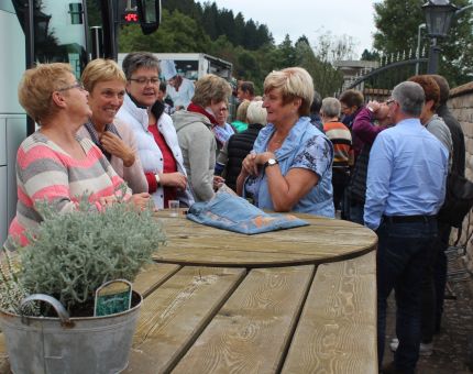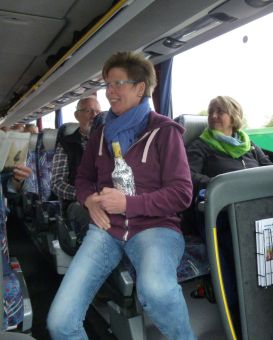 Vor der Weiterfahrt gaben Elisabeth und Karl Warmers auf ihr Ehejubiläum eine Runde, auch Busfahrer Bernd ließ sich seinen runden Geburtstag anmerken...