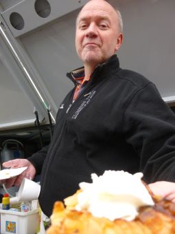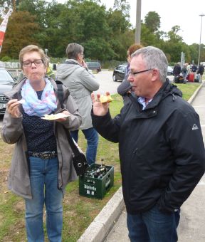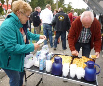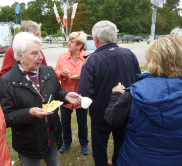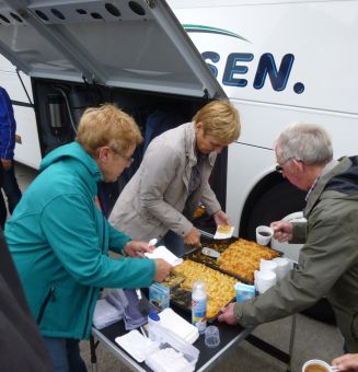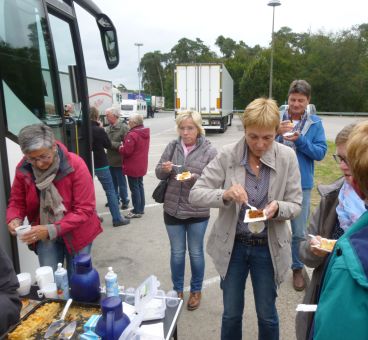 Auf dem Weg nach Stuttgart gab es dann in der nähe des Hockenheimrings frischen Apfelkuchen - da ließen sich die 45 Fahrtteilnehmer nicht lumpen.