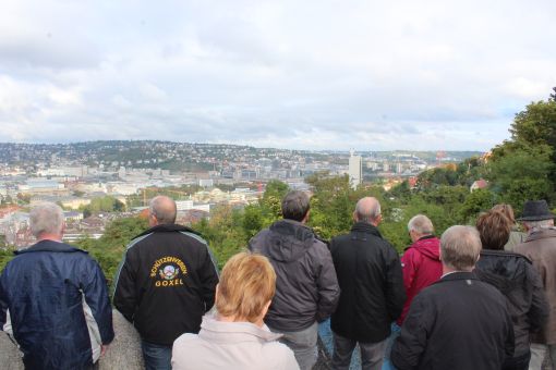 Stuttgart. Mit Witz und schwäbischem Humor mit einer Portion Selbstironie schaffte es die Reiseleiterin, uns die liebenswerten Seiten von Stuttgart offenzulegen - und die anderen Seiten zu verbergen. Natürlich war "Stuttgart 21" mit seiner riesigen Baustelle genauso ein Thema wie der allseits beliebte Ministerpräsident Kretschmer, dessen Dienstsitz in wunderbarer Lage am Hang die Gruppe auf dem Weg zum Fernsehturm sehen konnte.