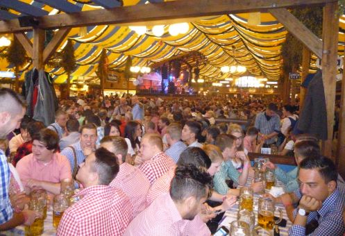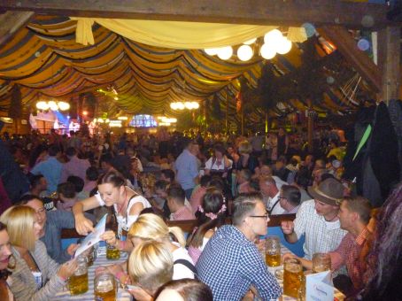 Auf dem Wasengelände am Necker herrschte echte Volksfeststimmung. Im Fürstenberg-Zelt, das mit knapp 4.000 Besuchern rappelvoll war, hieß es zunächst: Plätze suchen und die erste Maß bestellen.