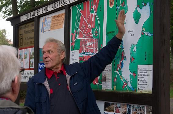 Noch am frühen Abend zeigte Reisebegleiter Udo Lingk den Gästen bei einem Rundgang die die Sehenswürdigkeiten des Luftkurortes an der Müritz-Elde-Wasserstraße, die von der Müritz nach über 200 km mit 17 Schleusen bis zur Mündung in die Elbe bei Dömitz mündet.