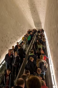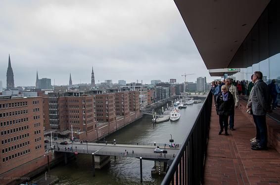 Bequem per Rolltreppe ging es hinauf auf die "Plazza", von dort gab es herrliche Rundblicke auf den Hafen und das Zentrum der Hansestadt an der Elbe.