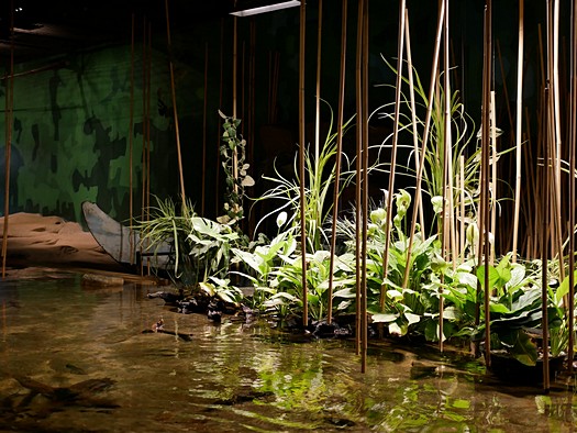 Am Vormittag war das nicht weiter störend, denn im KLIMAHAUS wurden auch andere Wetterlagen spürbar: von 30 Grad in der Sahara bis zu minus 6 Grad Kälte. In sehr anschaubarer und fühlbaren Themenwelten, die alle entlang des 8 Längengrades (an dem Bremerhaven liegt) angesiedelt sind konnten Schweizer Berge ebenso bestiegen werden wie durch die Sahel-Zone gelaufen werden. Auch die Forscher in der Antarktis waren bei ihrer Arbeit zu beobachten. Dargestellt wurde eine Reise um die Welt am 8. Längengrad - was etwa 40.000 km ausmachen. In der Ausstellung waren es allerdings nur gut zwei Kilometer Laufweg.