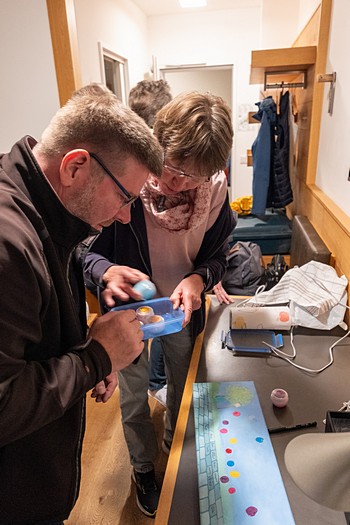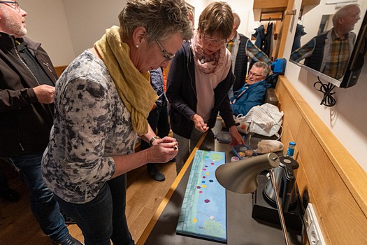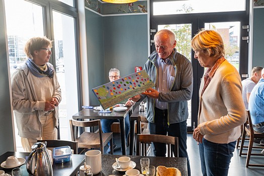 Am Abreisetag wartete noch eine weitere Überraschung auf den Reiseleiter und seine Ehefrau: Marita Wies hatte ein Bild gestaltet, auf dem sich alle Mitreisenden mit einem Finger-Farb-Abdruck und ihrem Namen verewigt hatten. Zur Vollständigkeit konnten nach dem Frühstück Alois und Klara Bosman ebenfalls ihren "Abdruck" hinterlassen und diese Erinnerung mit nach hause nehmen.