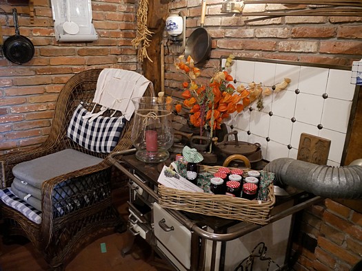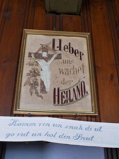 Zuvor gab es im gegenüber liegenden Papenburger Hus das sog. "Arme-Leute-Essen" - Buchweizen-Pfannkuchen, frisch zubereitet von den Damen des Heimatvereins. Zudem wurde friesischer Tee mit einem "Moorwasser" gereicht.