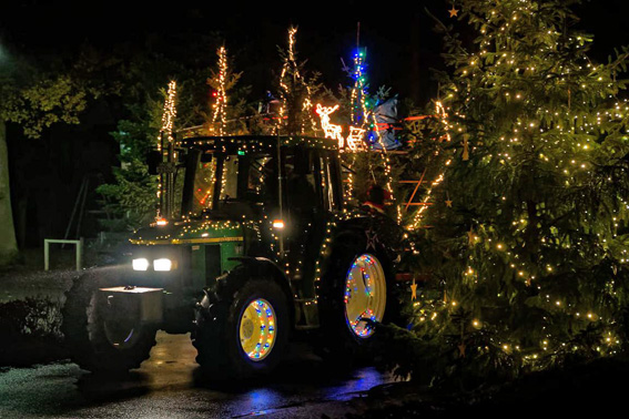 Wie schon am Abend des 1. Adventssonntag 2020 überrasche in buntes Gefährt mit Traktor und Anhänger die Wittenfelderinnen und Wittenfelder. Jetzt macht so der Nikolaus seine Runde durchs Wohngebiet, unüberhörbar mit passenden Liedern zum Anlass - zur Freude von Jung und Alt. Auch in der Bauerschaft Goxel erfreute das Gefährt an den Adventssonntagen die Anwohner.
