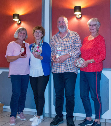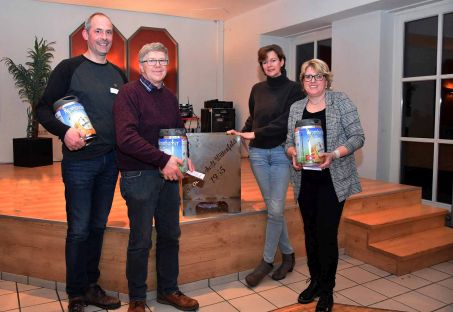 | Glücksfee Maria Lammering zog die glücklichen Gewinnerinnen und Geweinner von einigen Sachpreisen. | Marinne Stippel, Ursula Richter, Heiner Imming und Walburga Kloster. |
