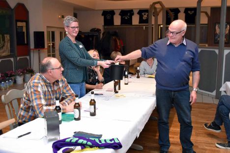 Zum Schluss sorgte Heidekönigin Tanja Gerding (r.) als Glücksgöttin, dass sich drei der erschienenen Mitglieder über ein nettes Geschenk freuen konnten ...