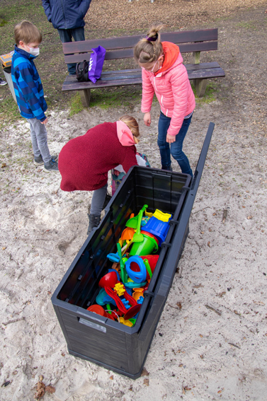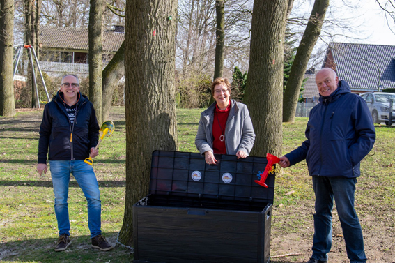 Nach diesem tollen Ostergeschenk mussten die Kinder in Goxel gar nicht lange suchen! Der Heidethron der Nachbarschaft Wittenfeld spendiert eine gut gefüllte Kiste mit Sandkastenspielzeug, die nun direkt neben der Buddelkiste am Spielplatz Monenberg zu finden ist. Das Heide-Königspaar Maria Lammering und Heinz Gröning hatte sich diese Überraschung überlegt, da auch in diesem Jahr das traditionelle große Osterfeuer der Nachbarschaft ausfallen muss. Hier sorgt das Ehrenpaar ansonsten immer Stockbrot, das sich die Kids über einem kleinen Feuer fertig backen und genießen können.