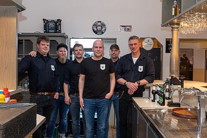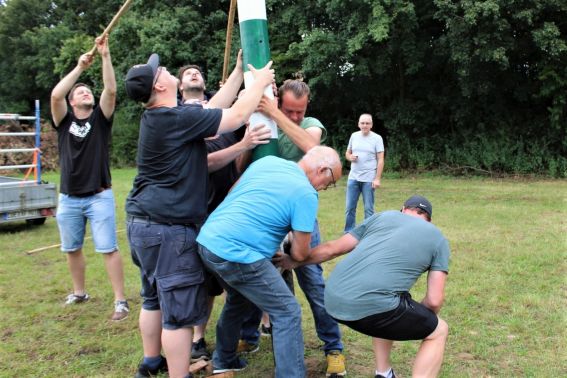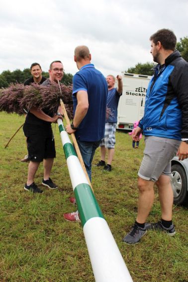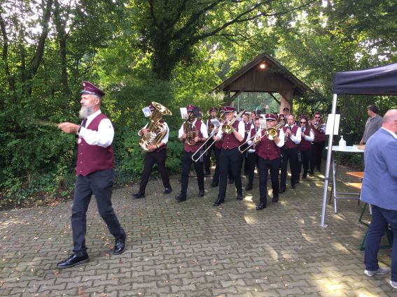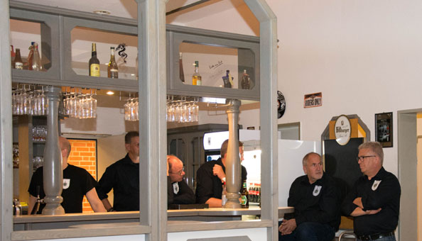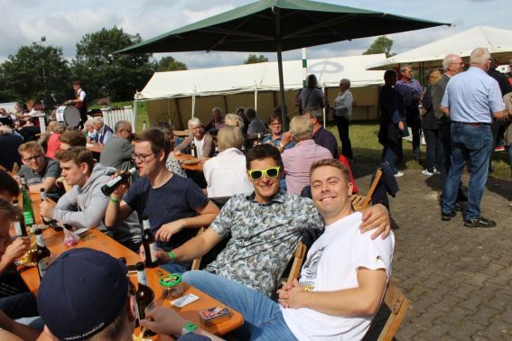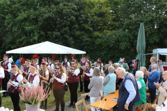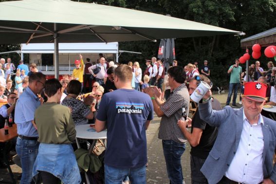 Die vor der Fahne des Schützenvereines stehenden "uniformierten" gehören zum Vorstandsteam des Goxeler Schützenvereins, das mit ihrem Vorsitzenden Holger Kaup die Bewirtung der Wittenfelder Nachbarschaftsmitglieder übernommen hatte.