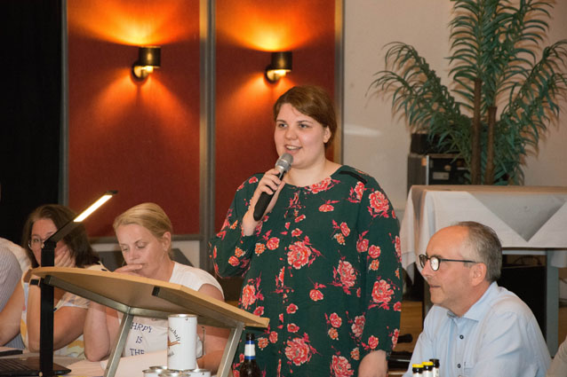 Den Bericht des Goxelrats gibt Cordula Brinkschulte ab. Auch der Goxelrat musste kreative werden und coronakonforme Veranstaltungsformate entwickeln, von denen einige Ideen auf künftig weiter verfolgt werden sollen.
