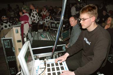 -sw- Coesfeld. Am Aschermittwoch ist alles vorbei – Dieser Spruch gilt nicht für Matthias Fürstenau. Denn der Coesfelder Ton- und Lichttechniker wird die nächsten Tage noch lange damit zu tun haben, die hunderte an Einzelteilen, die gestern in verbundener Form noch für die passende närrische Partystimmung im Festzelt an der Goxeler Kirche gesorgt haben, wieder in sein Lager einzusortieren. Ein 7,5 –Tonnen-LkW und ein weiterer Bulli reichen gerade eben aus, um das komplette Equipment zu transportieren. Am Freitag mussten Fürstenaus Männer zehn Stunden lang tüfteln, um unter anderem die knapp 60 1000-Watt-Scheinwerfer an und vor der Bühne aufzuhängen und korrekt an das über tausend Meter lange Kabelnetz anzuschließen. Unter der Bühne liegen sechs 2x18-Zoll-Bassteller, die allein schon dafür sorgen, dass der Auftritt der Tanzgruppen das Zelt zum Beben bringt. Um die Stromversorgung zu sichern, steht ein Hauptstromaggregat der Stadtwerke hinter dem Zelt. Die Kabelkanäle fließen allesamt in der Mitte des Zelts am Mischpult zusammen. Hier ist der „Fürst“, wie ihn seine Mitarbeiter getauft haben, Feldherr im Krieg der Knöpfe. Samstagnachmittag. Matthias Fürstenau steht am Pult und lauscht mit sorgenvoller Stirn den Klängen der Liveband Travados. Bei der Generalprobe geht es für Fürstenau vor allem um die Tonprobe der einzelnen Live-Gruppen. Travados-Sänger Heinz Eul marschiert mit dem Mikro am Mund zu Fürstenau: „Eins, zwo. Eins, zwo. Irgendwas klingt komisch.“ Dieser hat den Fehler bereits entdeckt: „Die 16 ist zu leise. Mal gucken, was da dran ist.“ Tonkanal 16 ist nicht richtig angeschlossen. Problem erkannt, Problem gebannt. Die Probe kann weitergehen. Neben dem Tonmischpult steht die Konsole für die Lichtsteuerung. Hier ist der Platz von Johannes Jäger, der für die Beleuchtungschoreographie zuständig ist. Während die Mimen auf der Bühne ihr Programm proben, tanzen Jägers Finger wie die eines Pianisten über die knapp 100 Knöpfe auf dem Pult vor ihm, mit denen die Bühnenlampen jeweils einzeln aktiviert und gedimmt werden können. Ob denn auch mal Sonderwünsche von den Künstlern kommen? „Bei Karnevalsveranstaltungen eigentlich nicht. Die wissen nämlich meistens gar nicht, was alles möglich ist. Hier mache ich das eigentlich alles nach Gefühl“, antwortet Jäger grinsend. Samstagnacht. Kurz nach Elf. Das große Finale des Büttabends. Während der Büttmarsch spielt, schwingt Fürstenau die Arme wie ein Dirigent in die Höhe. Der Tonregisseur wirkt gelöst: Alles ist glatt gelaufen. |