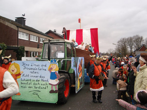 Prinz Linus und Prinzessin Carina hatten beim Rosenmontagsumzug in Goxel das Zepter in der Hand. Mehrere Tausend Narren bestaunten die teilweise sehr phantasievoll erstellten Kostüme und toll gebauten Wagen.