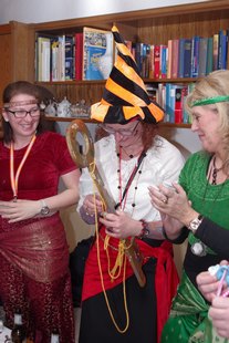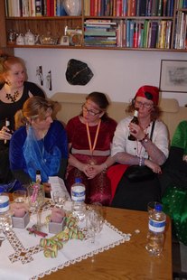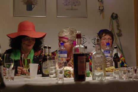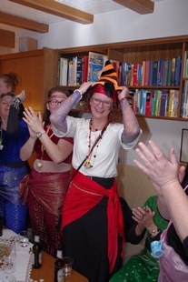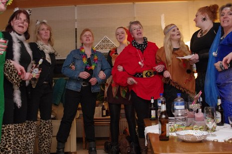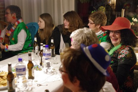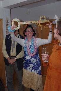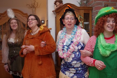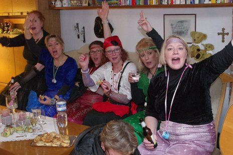 Erstmalig starteten sie (am 4. Februar) mit einem Besuch bei Möllers. Dann gings zu Ahlerts Mühle und anschliessend zu Selting. Die Pausen wurden genutzt, um neue Energie zu tanken. Der nächste Halt war dann wieder im Wohnzimmer bei Bernhard. Bernhard überreichte Cilli Heine, "Alt-Weiber-Prinzessin 2015" den Schlüssel, damit dieser eine neue Trägerin finden sollte: in dieser Session ist Britta Völker Prinzessin der Goxeler Weiber! Dann ging es weiter in den Keller am Tütenkuhlenweg 11 zur zünftigen Sessionseröffnungsparty. Die Bewirtung der jecken Weiber erfolgte wie in den vergangenen Jahren auch, durch Männer aus dem Vorstand der Nachbarschaft: Wittenfeld.