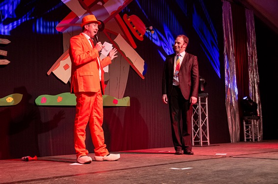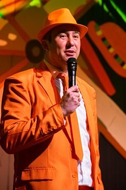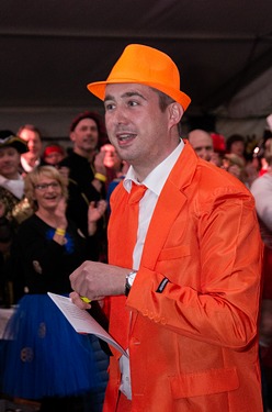 denn Moderator Christofer Wesseling trat nicht nur im orangefarbenen Anzug
