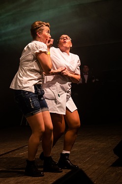 Nach der Pause kamen Berkelzwerge als "Drei-Käse-Hochs" auf die Bühnen und rockten das Zelt mit einem bunten Musik- und Verkleidungsmix. Die Besucher riss es von den Sitzen!