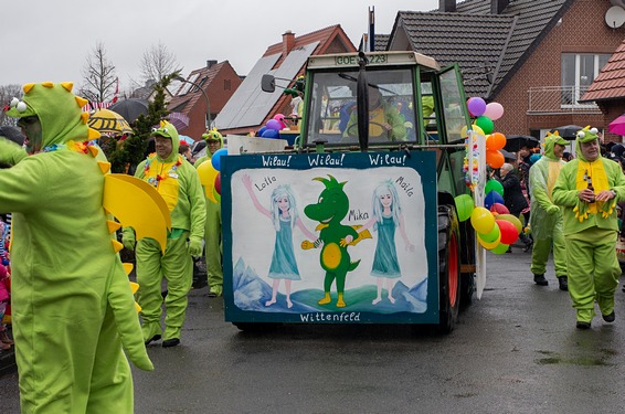Und dann machte sich der Zug auf durch die Straßen von Goxel-Wittenfeld. Das Wetter hatte zwar einige Zuschauer weniger an die Straßen gelockt, aber diejenigen, die gekommen waren, ließen sich die gute närrische Laune nicht verderben. Hier sollen jetzt die Bilder sprechen...