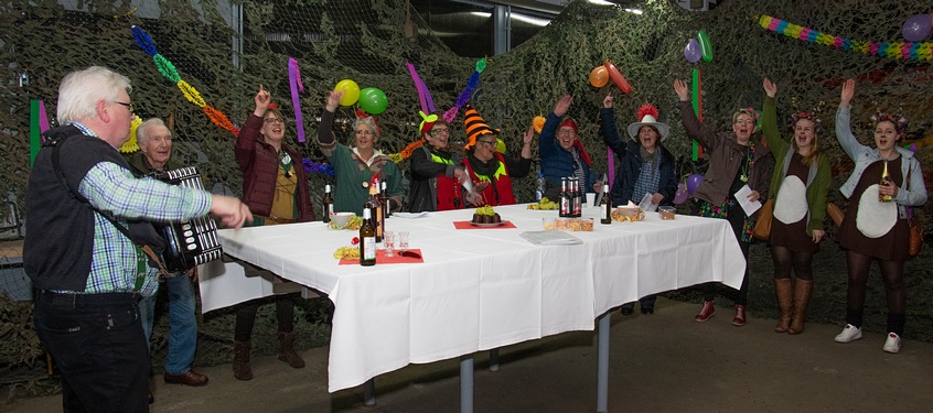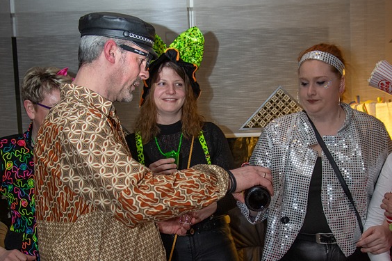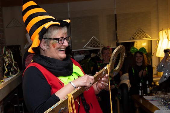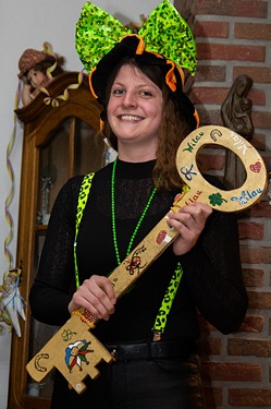 Dann wird es spannend: wer…………wer bekommt den Schlüssel zu Bernhards Wohnzimmer (oder zum Goxeler Rathaus)…. Bine Kappe hatte die Wahl und erkor spontan "Kika" alias Franziska Gerding zu ihrer Nachfolgerin. Sichtlich überrascht nahm Kika die Ehre an und führte die Truppe dann ins Pfarrheim Goxel zur „Alt-Weiber-Party“. Männer des Vorstandes der Nachbarschaft standen bereit, um die jecken Weiber mit allem zu versorgen, was das jecke Herz begehrte.
