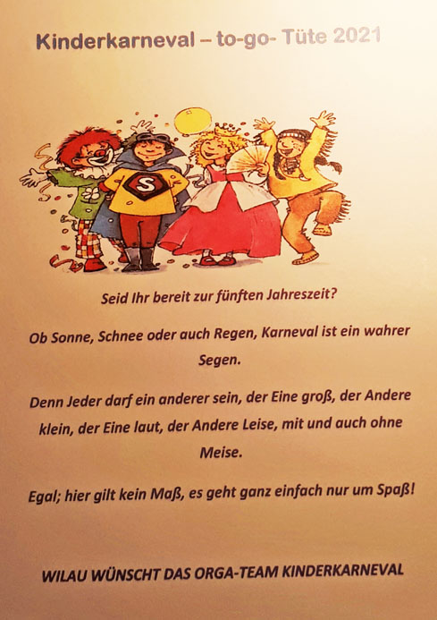 haben wir für Euch viele bunte karnevalistische Dinge zusammengepackt! Mit der "Wittenfelder-Karneval-Coronatüte"