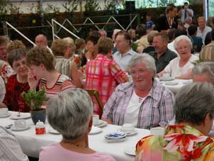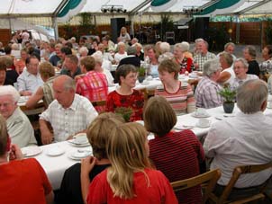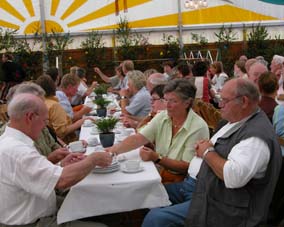 Kaffeetrinken traffen sich alle Nachbarn im Festzelt. Folgende