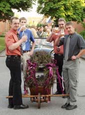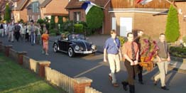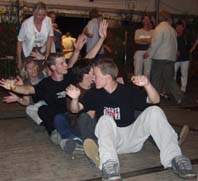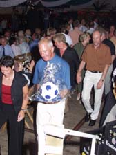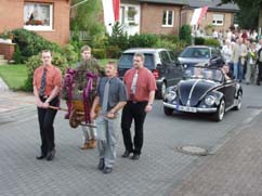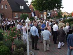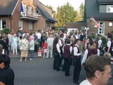 Beim König trafen sich traditionell die Wittenfelder und geleiteten das Heidekönigspaar des letzten Jahres Ralf Thoring und Marion Köning durch das Wohngebiet zum Zelt. Michael Uphues, Wirt im "Wittenfelder Hof" ließ es sich nicht nehmen, dem Thron eine kleine Stärkung zu überbringen. Besonders die Träger der Heidekarre genossen diese kleine Erholungspause. Im Zelt ging es dann hoch her, begrüßt vom Vorsitzenden der Nachbarschaft, Ernst Averkamp, zogen zahlreiche Gratulanten zum Thron. Gefeiert wurde bis tief in die Nacht.