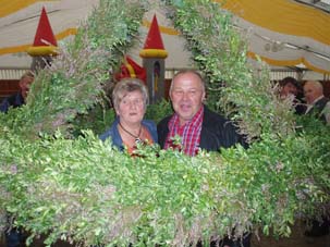 Martha und Heidekönig Rudolf beim Abnehmen des Kranzes im Festzelt am Montag