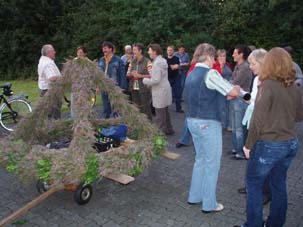 Mit einem Begrüßungstrunk von Heidekönigin Martha und Heidekönig Rudolf wurden die Nachbarn mit dem Heidekranz empfangen.