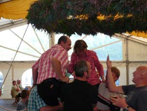 ... noch ein Tänzchen unter dem Kranz, und dann wurde das Symbol des Festes von den Nachbarn des Rekener Postweges abgebaut.