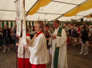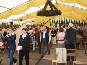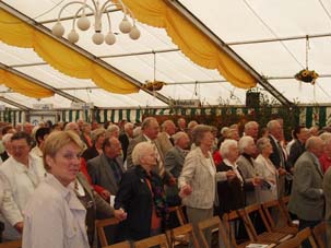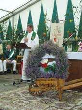 Traditionell beginn der Sonntag des Sommerfestes mit der Plattdeutschen Messe im Festzelt. Wieder hatten auch viele Coesfelder den Weg nach Goxel gefunden. Die Messe wurde zelebriert von Pastor Hellkuhl aus Wulfen, der es Verstand, die Gottesdienstbesucher mit einer Prise Humor in seinen Bann zu ziehen.