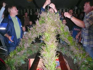 ... wo er gleich von fachmännischen Händen unter Beobachtung von Heidekönig Paul aufgehängt wurde.