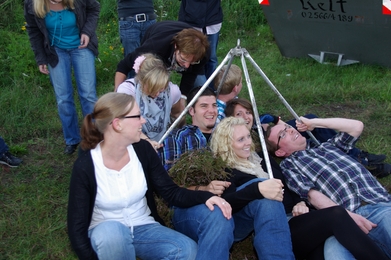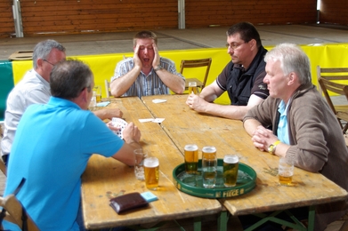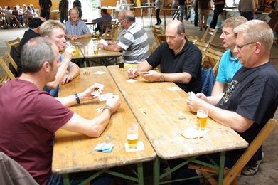 Kartenspielen beim Buschaufräumen gehört zum Sommerfest wie die Heide zur Karre.