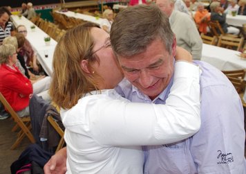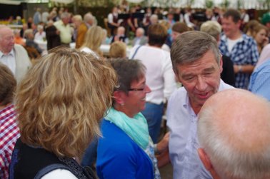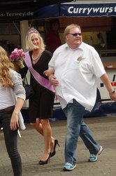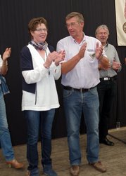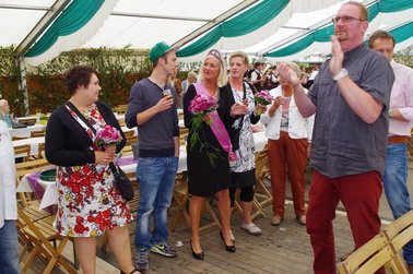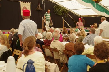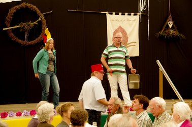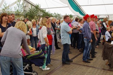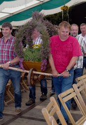 Und dann wurde es ernst: Versteigerer Christian, unterstütz von mehreren deutlich erkennbaren "Kassierern" animierte die Wittenfelder, mit ihren Eurostücken das Rennen um die Ehre des neuen Heidekönigs bzw. der Heidekönigin zu machen. Hier saßen dann die Euro-Stück nicht mehr ganz so locker, wie vor der Versteigerungspause.