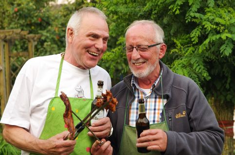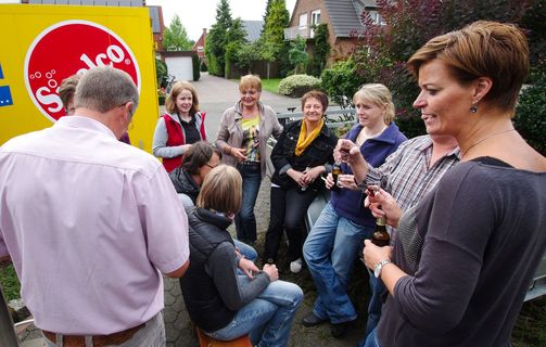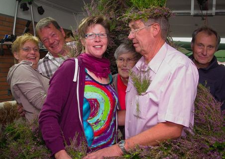 Schon traditionell haben die Nachbarn am Rekener Postweg den Heidekranz gebunden. In diesem Jahr musste zusätzlich auch die Heidekarre für Heidekönig Willi und Heidekönigin Marita geschmückt werden. Nachdem die Männer nachmittags die Heide geholt hatten, wurden am Abend Kranz und Karre geschmückt. Auch der Vorjahreskönig Andre war mit seinem Thron zu Gast. Nach getaner Arbeiten wurde noch bis spät in die Nacht das Königspaar gefeiert.