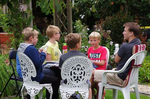 | Sommerfest 2014 - Binden des Heidekranzes |